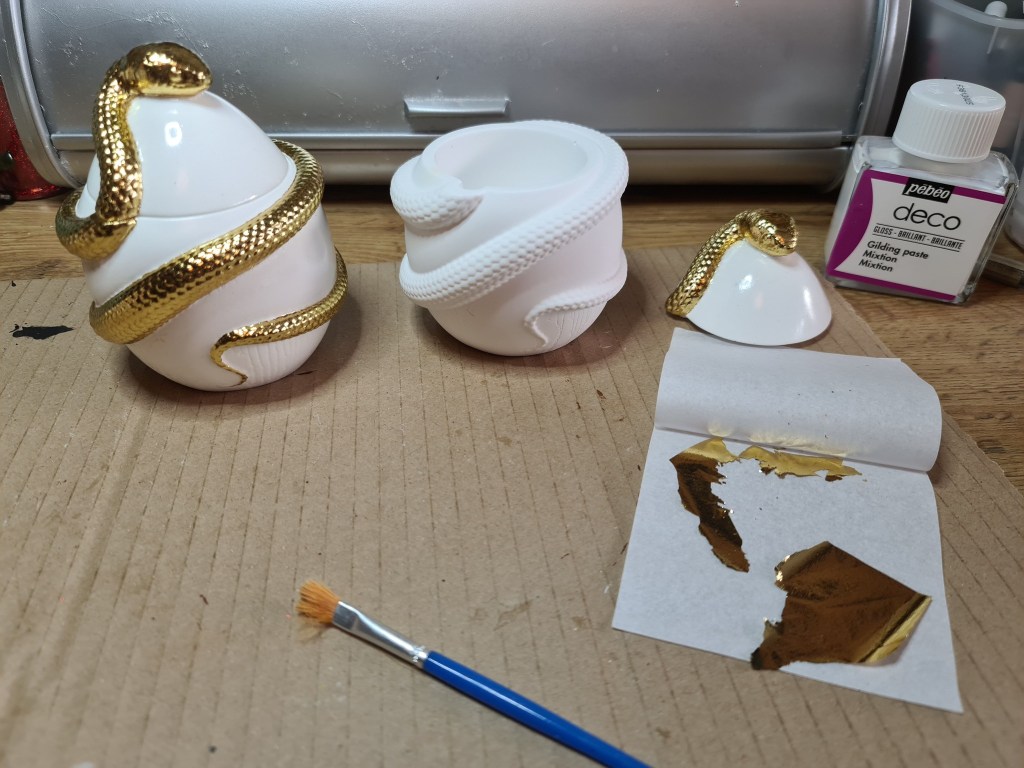 Toutes ces créations sont moulées, peintes à la main ou décorées à la feuille d’or, puis vernies, afin de leur garantir une bonne protection face à l’usure.